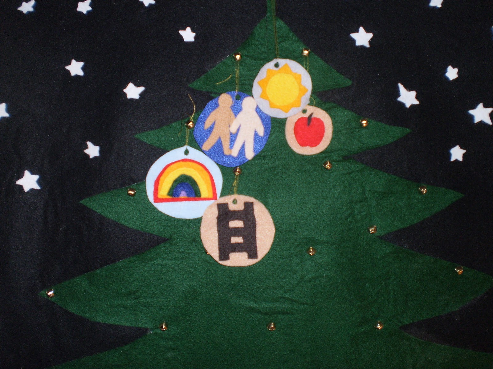 | This Jesse Tree was made by my husband and I over 6 years ago. Made of all felt and very kid friendly |